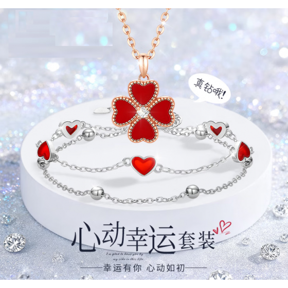 Four-leaf Clover Necklace with Silver Chain Bracelet