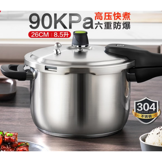 stainless steel explosion-proof pressure cooker:26cm,8.5L 304 Stainless Steel Explosion-Proof Pressure Cooker, suitable for gas stove and induction cooktop
